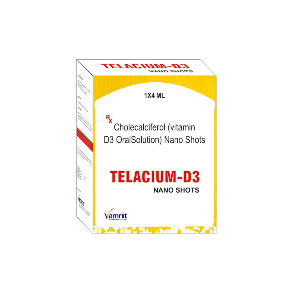 Telacium D3 Shots | Cholecalciferol (Vitamin D3 OralSolution) Nano Shots | 1 x 4 ml | ₹ 60/ Per Shot | ₹ - | VIEW |