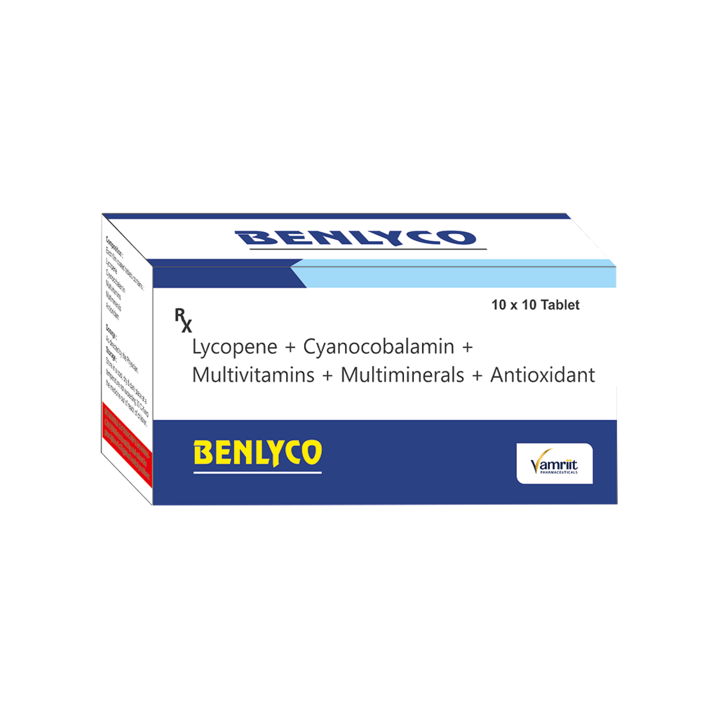 Benlyco | Lycopene + Cyanocobalamin + Multivitamins + Multiminerals + Antioxidant | 10 x 10 Blister | ₹ - | ₹ - | VIEW |