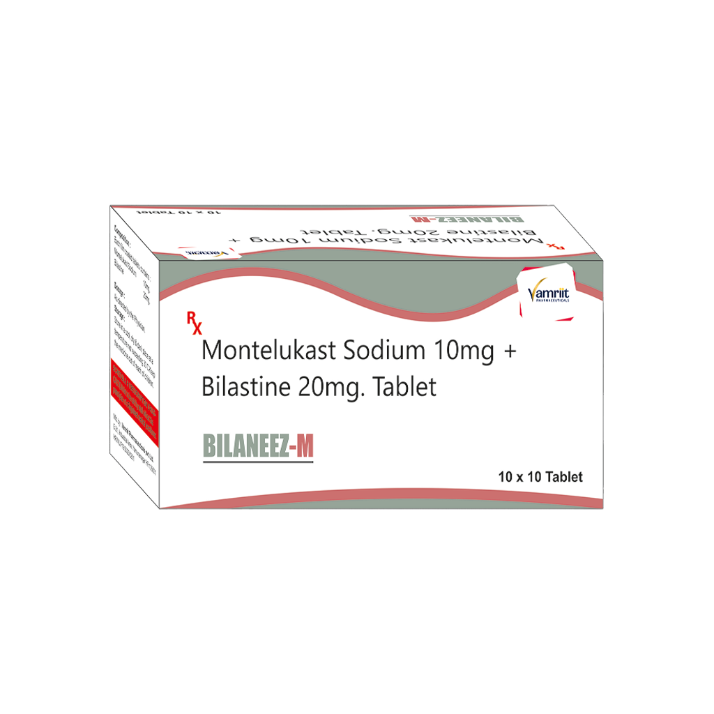Bilaneez M | Montelukast Sodium 10 mg + Bilastine 20 mg | 10 x 10 Tablet | ₹ 1500 | ₹ - | VIEW |