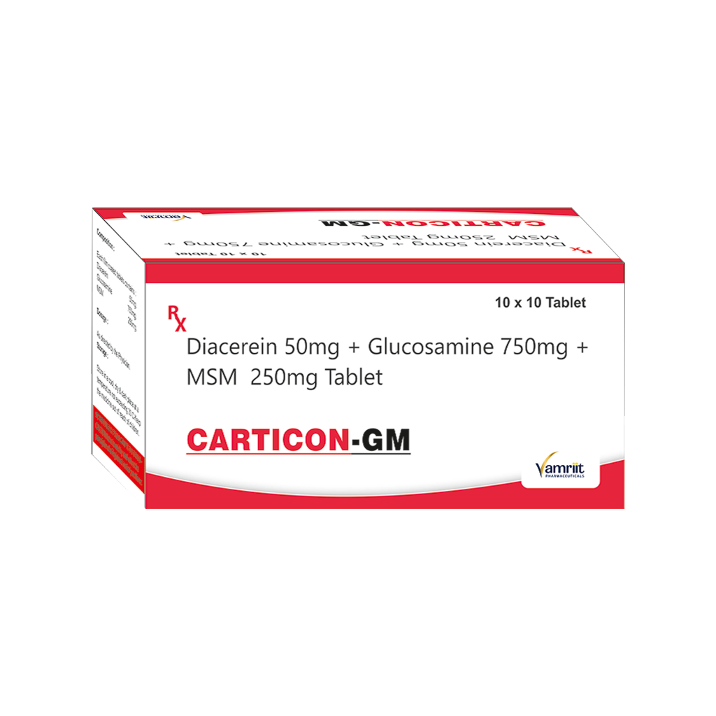 | Carticon GM | Diacerein 50 mg + Glucosamine 750 mg + MSM 250 mg | 10 x 10 Blister | ₹ - | ₹ - | VIEW |