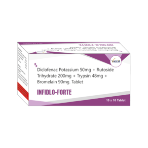 Diclofenac Potassium 50 mg + Rutoside 200 mg + Trypsin 48 mg + Bromelain 90 mg Packing: | 10 x 10 Blister | Tablets | VIEW |